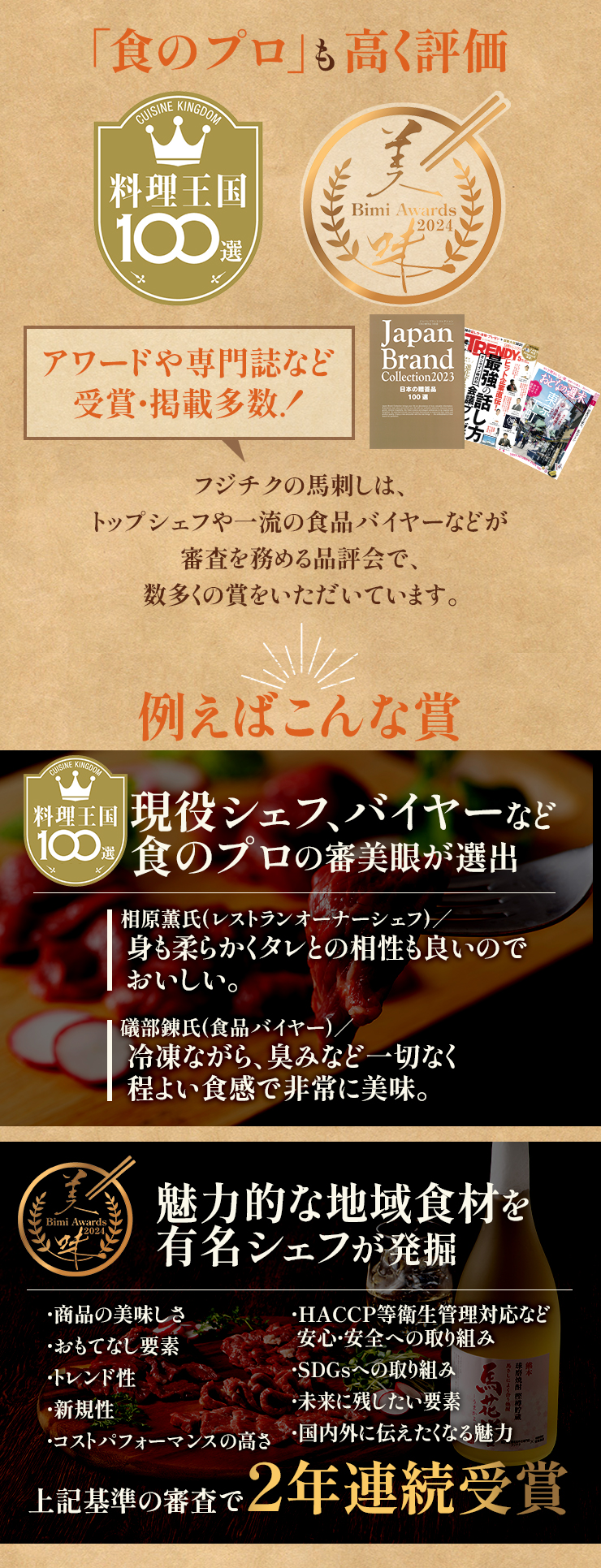 馬刺しと黒毛和牛の専門店「フジチク」より本場熊本の新鮮な馬刺しを産地直送にてにてお届けいたします。